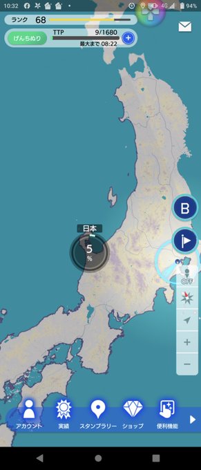 日本を5%達成…まだ先は長い #テクテクライフ pic.twitter.com/siIT67tYOw